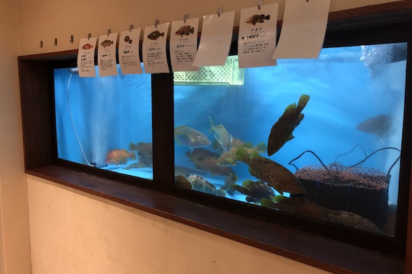 泳ぐ魚を見ながらお食事を楽しんでいただけます。